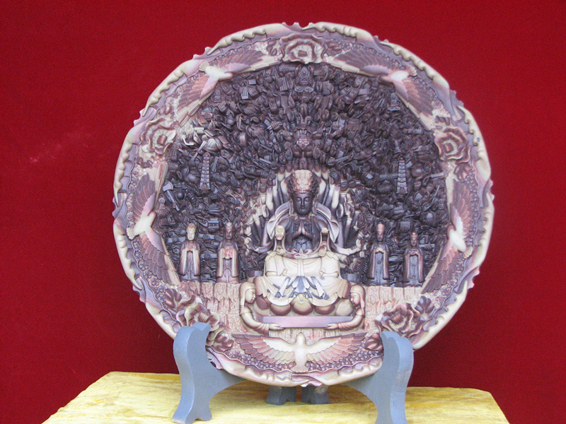 Chongqing Dazu District Stone Carving Art Company was founded in 1991 and is located in Group 7, Jinxing Village, Tangxiang Street Office, Dazu District, Chongqing. It is a designated production enterprise for national tourism commodities, a designated production enterprise for national ethnic special needs commodities, a traditional arts and crafts protection enterprise in Chongqing, and a district level leading enterprise. In November 2013, the company became the second batch of municipal skill expert studios, known as the "Stone Carving and Stone Carving Craft Skill Expert Studio". Mainly engaged in the design, production, sales, and urban sculpture production of stone carving handicrafts. The works mainly focus on Buddha, Bodhisattva, Arhat, people and animals. The representative works of the company include: purple robe jade, White Marble, kitsch Guanyin, sun moon Guanyin, pure bottle Guanyin, sandstone Arhat, lion, pixiu, purple robe jade inkstone, etc. The main characteristics of its carving are exquisite and rounded. The carving techniques commonly used by sculptors are round carving and carving, which highlight the three-dimensional sense of the work to a greater extent, increasing the roundness of beads and the face. The technique of carving makes the beauty of Guanyin and the ribbons of her dress lighter and more realistic. The company's products are all completed by hand carving, which requires higher technical requirements and strong flexibility. A relief work with smooth lines and stable cutting techniques will give people a good visual experience. The company's carved works sell well throughout the country and are exported to more than 40 countries such as the United States and France. He has won national and municipal gold awards for many times, and his works have been collected by 6 units, including the China Art Museum, the China Agricultural Museum, and the Dazu Rock Carvings Museum.